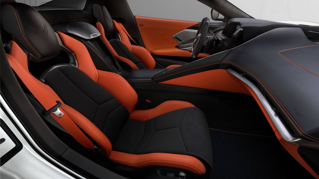 14 Speakers, 2 Cargo Nets, 4-Wheel Disc Brakes, 8-Way Power Driver Seat Adjuster, 8-Way Power Passenger Seat Adjuster, ABS brakes, Adaptive suspension, Air Conditioning, Alloy wheels, AM/FM radio: SiriusXM, Auto High-beam Headlights, Auto-dimming door mirrors, Auto-dimming Rear-View mirror, Automatic Leveling System Headlamp Control, Automatic temperature control, Black Exhaust Tips, Bose Performance Series Sound System w/14 Speakers, Brake assist, Bumpers: body-color, Carbon Fiber Level 2 Interior Trim, Carbon Fiber/Sueded Microfiber-Wrap Steering Wheel, Compass, Convertible HardTop, Convertible roof lining, Custom Leather Wrapped Interior Package, Delay-off headlights, Driver door bin, Driver Power Bolster Seat Adjuster, Driver vanity mirror, Dual front impact airbags, Dual front side impact airbags, Electrical Theft Deterrent System, Electronic Stability Control, Emergency communication system: OnStar and Chevrolet connected services capable, Exterior Parking Camera Rear, Four wheel independent suspension, Front anti-roll bar, Front Bucket Seats, Front Center Armrest, Front dual zone A/C, Front License Plate Bracket, Front Lift Adjustable Height w/Memory, Front reading lights, Fully automatic headlights, Garage door transmitter, Glass rear window, GT2 Bucket Seats, HD Front & Rear Vision Cameras, Heads-Up Display, Heated & Vented Driver & Passenger Seats, Heated door mirrors, Heated front seats, Heated Steering Wheel, Heated steering wheel, Illuminated entry, Integrated roll-over protection, Leather Shift Knob, Leather steering wheel, Low tire pressure warning, Memory Driver & Passenger Convenience Package, Memory seat, Napa Lthr Seating Surfaces w/Perforated Inserts, Navigation System, Occupant sensing airbag, Orange Seat Belt Color, Outside temperature display, Overhead console, Panic alarm, Passenger door bin, Passenger Power Bolster Seat Adjuster, Passenger vanity mirror, Performance Data & Video Recorder, Power convertible roof, Power door mirrors, Power Driver Lumbar Control Seat Adjuster, Power driver seat, Power Passenger Lumbar Control Seat Adjuster, Power passenger seat, Power steering, Power windows, Power-Adjustable Outside Heated Mirrors, Preferred Equipment Group 3LZ, Premium audio system: Chevrolet Infotainment 3 Premium, Radio data system, Radio: Chevrolet Infotainment 3 Premium System, Rear anti-roll bar, Rear Cross Traffic Alert, Rear window defroster, Remote keyless entry, Security system, Side Blind Zone Alert, Speed control, Speed-sensing steering, Spoiler, Sport steering wheel, Steering wheel memory, Steering wheel mounted audio controls, Sueded Microfiber-Wrapped Upper Interior Trim Pkg, Tachometer, Telescoping steering wheel, Tilt steering wheel, Traction control, Trip computer, Turn signal indicator mirrors, Universal Home Remote, Variably intermittent wipers, Vehicle Inclination Theft Deterrent Sensor, Vehicle Interior Movement Theft Deterrent Sensor, Ventilated front seats, Voltmeter, Wheels: 20 x 10 Fr/21 x 13 Rr Gloss Black, Wheels: 20 x 10 Fr/21 x 13 Rr Titanium Satin, Wireless Charging for Devices.