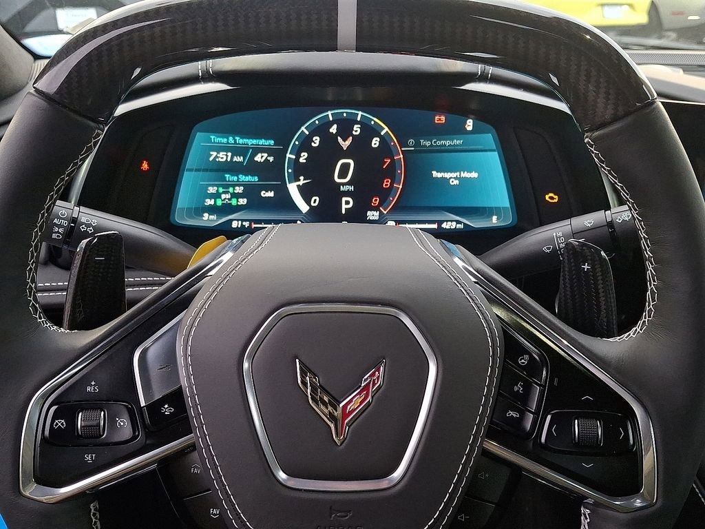 14 Speakers, 2 Cargo Nets, 4-Wheel Disc Brakes, 8-Way Power Driver Seat Adjuster, 8-Way Power Passenger Seat Adjuster, ABS brakes, Adaptive suspension, Air Conditioning, Alloy wheels, AM/FM radio: SiriusXM, Auto High-beam Headlights, Auto-dimming door mirrors, Auto-dimming Rear-View mirror, Automatic temperature control, Battery Protection Package, Black Exhaust Tips, Bose Performance Series Sound System w/14 Speakers, Brake assist, Bumpers: body-color, Compass, Convertible Engine Appearance Package, Convertible HardTop, Convertible roof lining, Custom Interior Trim & Seat Combination, Custom Leather Wrapped Interior Package, Delay-off headlights, Driver door bin, Driver Power Bolster Seat Adjuster, Driver vanity mirror, Dual front impact airbags, Dual front side impact airbags, Electrical Theft Deterrent System, Electronic Stability Control, Emergency communication system: OnStar and Chevrolet connected services capable, Engine Specification Plaque (LPO), Exterior Parking Camera Rear, Four wheel independent suspension, Front anti-roll bar, Front Bucket Seats, Front Center Armrest, Front dual zone A/C, Front License Plate Bracket, Front reading lights, Fully automatic headlights, Garage door transmitter, Glass rear window, GT2 Bucket Seats, HD Front & Rear Vision Cameras, Heads-Up Display, Heated & Vented Driver & Passenger Seats, Heated door mirrors, Heated front seats, Heated Steering Wheel, Heated steering wheel, Illuminated entry, Integrated roll-over protection, Leather Shift Knob, Leather steering wheel, Low tire pressure warning, Memory Driver & Passenger Convenience Package, Memory seat, Napa Lthr Seating Surfaces w/Perforated Inserts, Navigation System, Occupant sensing airbag, Outside temperature display, Overhead console, Panic alarm, Passenger door bin, Passenger Power Bolster Seat Adjuster, Passenger vanity mirror, Performance Data & Video Recorder, Personalized Plaque, Power convertible roof, Power door mirrors, Power Driver Lumbar Control Seat Adjuster, Power driver seat, Power Passenger Lumbar Control Seat Adjuster, Power passenger seat, Power steering, Power windows, Power-Adjustable Outside Heated Mirrors, Preferred Equipment Group 3LZ, Premium audio system: Chevrolet Infotainment 3 Premium, Radio data system, Radio: Chevrolet Infotainment 3 Premium System, Rear anti-roll bar, Rear Cross Traffic Alert, Rear window defroster, Remote keyless entry, Security system, Side Blind Zone Alert, Speed control, Speed-sensing steering, Spoiler, Sport steering wheel, Stealth Interior Trim Package, Steering wheel memory, Steering wheel mounted audio controls, Sueded Microfiber-Wrapped Upper Interior Trim Pkg, Tachometer, Telescoping steering wheel, Tension Blue Seat Belt Color, Tilt steering wheel, Traction control, Trip computer, Turn signal indicator mirrors, Universal Home Remote, Variably intermittent wipers, Vehicle Inclination Theft Deterrent Sensor, Vehicle Interior Movement Theft Deterrent Sensor, Velocity Yellow-Painted Calipers, Ventilated front seats, Voltmeter, Wheels: 20 x 10 Fr/21 x 13 Rr Gloss Black, Wheels: 20 x 10 Fr/21 x 13 Rr Titanium Satin, Wireless Charging for Devices.