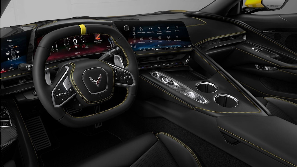 14 Speakers, 2 Cargo Nets, 4-Wheel Disc Brakes, 8-Way Power Driver Seat Adjuster, 8-Way Power Passenger Seat Adjuster, ABS brakes, Air Conditioning, Alloy wheels, AM/FM radio: SiriusXM, Auto High-beam Headlights, Auto-dimming door mirrors, Auto-dimming Rear-View mirror, Automatic temperature control, Bose Performance Series Sound System with 14 Speakers, Brake assist, Bumpers: body-color, Compass, Delay-off headlights, Driver door bin, Driver Power Bolster Seat Adjuster, Driver vanity mirror, Dual front impact airbags, Dual front side impact airbags, Electrical Theft Deterrent System, Electronic Stability Control, Emergency communication system: OnStar and Chevrolet connected services capable, Exterior Parking Camera Rear, Four wheel independent suspension, Front anti-roll bar, Front Bucket Seats, Front Center Armrest, Front dual zone A/C, Front reading lights, Fully automatic headlights, Garage door transmitter, GT1 Bucket Seats, HD Front and Rear Vision Cameras, Head-Up Display, Heads-Up Display, Heated and Vented Driver and Passenger Seats, Heated door mirrors, Heated front seats, Heated Steering Wheel, Heated steering wheel, Illuminated entry, Leather Shift Knob, Leather steering wheel, Low tire pressure warning, Memory Driver and Passenger Convenience Package, Memory seat, Mulan Leather Seating Surfaces with Perforated Inserts, Navigation System, Occupant sensing airbag, Outside temperature display, Overhead console, Panic alarm, Passenger door bin, Passenger Power Bolster Seat Adjuster, Passenger vanity mirror, Performance Data and Video Recorder, Power door mirrors, Power Driver Lumbar Control Seat Adjuster, Power driver seat, Power Passenger Lumbar Control Seat Adjuster, Power passenger seat, Power steering, Power windows, Power-Adjustable Outside Heated Mirrors, Premium audio system: Chevrolet Infotainment 3 Premium, Radio data system, Radio: Infotainment System with Google Built-in, Rear anti-roll bar, Rear Cross Traffic Alert, Rear window defroster, Remote keyless entry, Security system, Side Blind Zone Alert, Speed control, Speed-sensing steering, Sport steering wheel, Steering wheel memory, Steering wheel mounted audio controls, Tachometer, Telescoping steering wheel, Tilt steering wheel, Traction control, Trip computer, Turn signal indicator mirrors, Universal Home Remote, Variably intermittent wipers, Vehicle Inclination Theft Deterrent Sensor, Vehicle Interior Movement Theft Deterrent Sensor, Ventilated front seats, Voltmeter, Wheels: 19 x 8.5 Front and 20 x 11 Rear 5-Split-Spoke, Wireless Phone Charging.