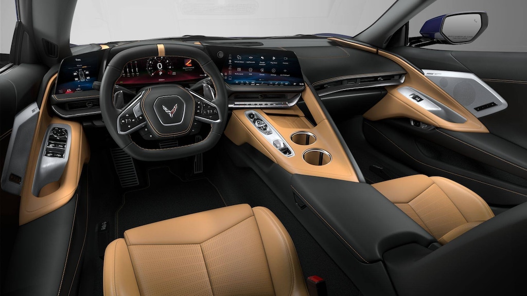 14 Speakers, 2 Cargo Nets, 4-Wheel Disc Brakes, 8-Way Power Driver Seat Adjuster, 8-Way Power Passenger Seat Adjuster, ABS brakes, Air Conditioning, Alloy wheels, AM/FM radio: SiriusXM, Auto High-beam Headlights, Auto-dimming door mirrors, Auto-dimming Rear-View mirror, Automatic temperature control, Bose Performance Series Sound System with 14 Speakers, Brake assist, Bumpers: body-color, Compass, Convertible HardTop, Convertible roof lining, Delay-off headlights, Driver door bin, Driver Power Bolster Seat Adjuster, Driver vanity mirror, Dual front impact airbags, Dual front side impact airbags, Electrical Theft Deterrent System, Electronic Stability Control, Emergency communication system: OnStar and Chevrolet connected services capable, Exterior Parking Camera Rear, Four wheel independent suspension, Front anti-roll bar, Front Bucket Seats, Front Center Armrest, Front dual zone A/C, Front License Plate Bracket, Front reading lights, Fully automatic headlights, Garage door transmitter, Glass rear window, GT1 Bucket Seats, GT2 Bucket Seats, HD Front and Rear Vision Cameras, Head-Up Display, Heads-Up Display, Heated and Vented Driver and Passenger Seats, Heated door mirrors, Heated front seats, Heated Steering Wheel, Heated steering wheel, Illuminated entry, Integrated roll-over protection, Lane Departure Warning System, Leather Shift Knob, Leather steering wheel, Low tire pressure warning, Low-Profile Rear Spoiler and Front Splitter, Memory Driver and Passenger Convenience Package, Memory seat, Mulan Leather Seating Surfaces with Perforated Inserts, Navigation System, Occupant sensing airbag, Outside temperature display, Overhead console, Panic alarm, Passenger door bin, Passenger Power Bolster Seat Adjuster, Passenger vanity mirror, Performance Data and Video Recorder, Power convertible roof, Power door mirrors, Power Driver Lumbar Control Seat Adjuster, Power driver seat, Power Passenger Lumbar Control Seat Adjuster, Power passenger seat, Power steering, Power windows, Power-Adjustable Outside Heated Mirrors, Preferred Equipment Group 2LT, Premium audio system: Chevrolet Infotainment 3 Premium, Radio data system, Radio: Infotainment System with Google Built-in, Rear anti-roll bar, Rear Cross Traffic Alert, Rear window defroster, Remote keyless entry, Security system, Side Blind Zone Alert, Speed control, Speed-sensing steering, Sport steering wheel, Steering wheel memory, Steering wheel mounted audio controls, Tachometer, Telescoping steering wheel, Tilt steering wheel, Traction control, Trip computer, Turn signal indicator mirrors, Universal Home Remote, Variably intermittent wipers, Vehicle Inclination Theft Deterrent Sensor, Vehicle Interior Movement Theft Deterrent Sensor, Velocity Yellow-Painted Calipers, Ventilated front seats, Voltmeter, Wheels: 19 x 8.5 Front and 20 x 11 Rear 5-Split-Spoke, Wireless Phone Charging.